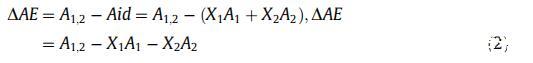 其中 A1,2 是 mma,Aid 是理想的混合單層,X1 和 X2 分別是組分 1 和 2 的摩爾分數。 A1 和 A2 是相同表麵壓力下每分子純單分子層的相應麵積。 DAE 值變為零 當物質形成理想混合物或不混溶時 (瓊斯和查普曼,1996 年)。