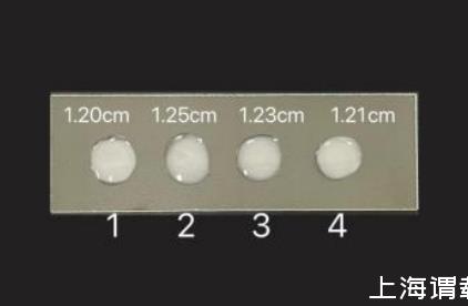 將製備好的塔塔粉配置為50%的水溶液,使用移液槍取100微升,在垂直高度2cm的條件下使液滴自然下落,測量液滴直徑,判斷其表麵張力大小。